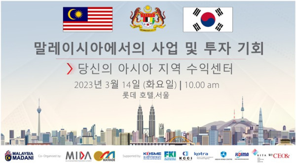 2023 3 14일 화요일, UN산업개발기구 한국투자진흥사무소(UNIDO ITPO KOREA)는 지난 1월 개최한 말레이시아 대표단 초청사업의 후속 활동으로 MIDA(말레이시아 투자진흥청)과 MATRADE(말레이시아 대외무역개발공사)가 공동 주최한 “말레이시아에서의 사업 및 투자 기회 세미나에 참여하였습니다.